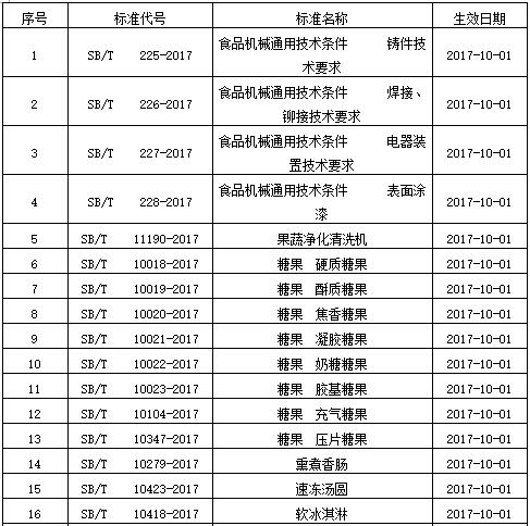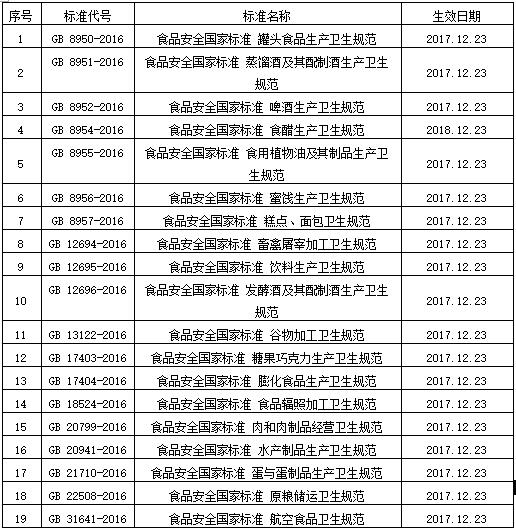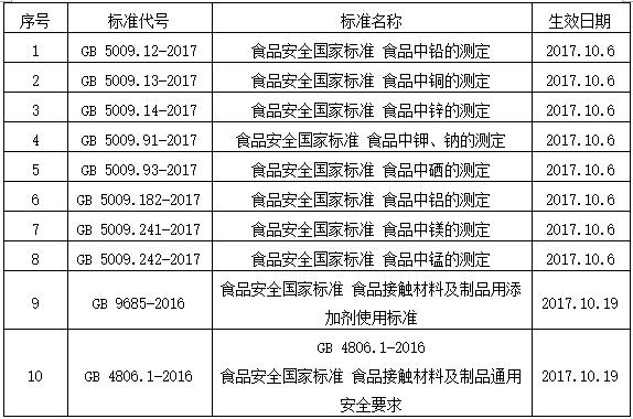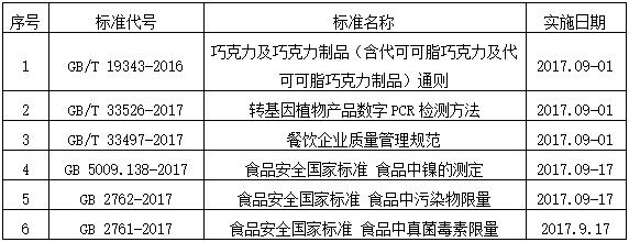2017年下半年即將實施的食品方面國家標準、食品進出口商檢標準以及食品行業標準匯總,標準的實施主要集中于7月、9月、10月和12月份。詳細請見下表,如有不完善之處還請批評指正。