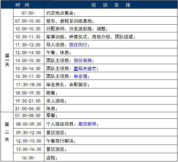 方案內(nèi)容設(shè)置--兩天版(拓展+旅游)
